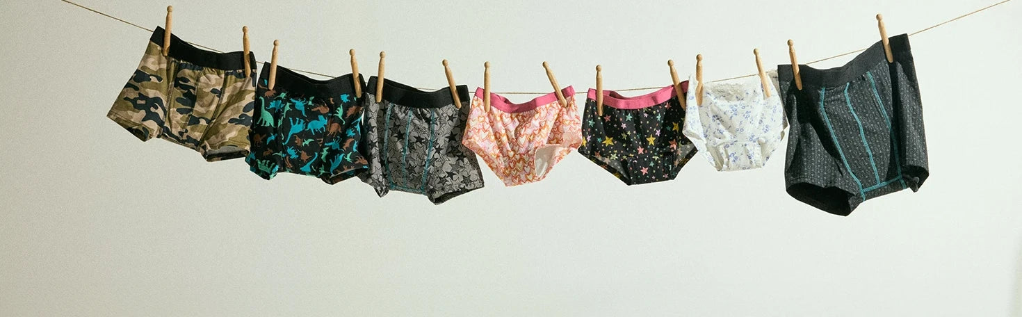 Vårt sortiment för pojkar och flickor finns i smarta designer och kan absorbera cirka 80 – 125 ml urin – det motsvarar en till två mindre olyckor. De är lätta att tvätta i maskin på upp till 60 grader.